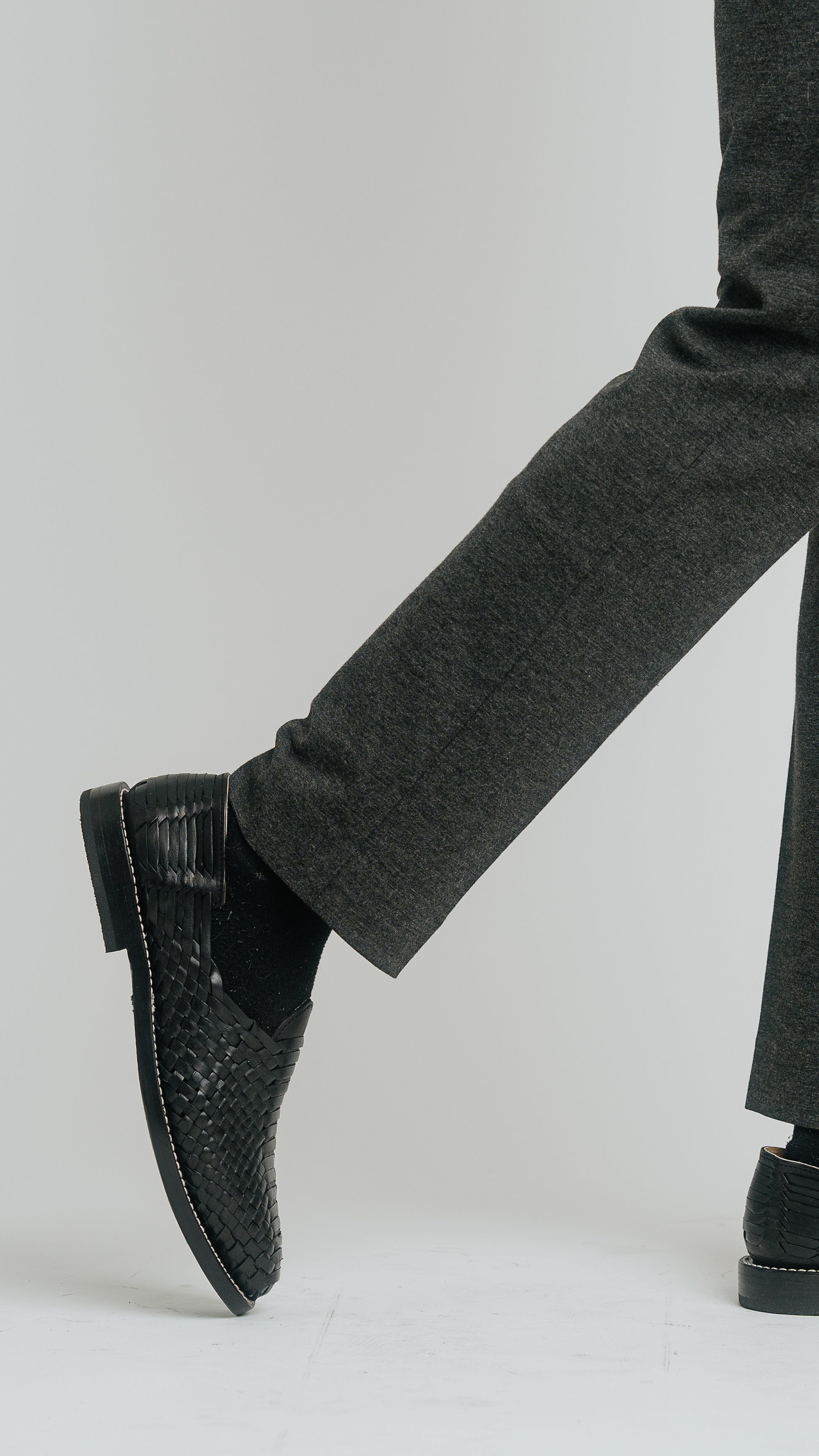 Each pair is woven entirely by hand by second- and third-generation artisans who understand the nuances of leather—how to bend it, stretch it, and manipulate it into a layered pattern that sits at the intersection of form and function.